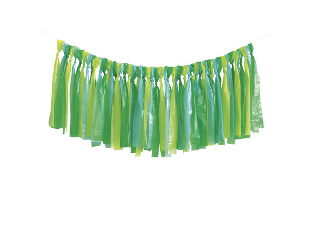 Frynsedekorasjon er en dekorativ frynsegirlander i plast som skaper liv og bevegelse i rommet. Perfekt til bursdag, sommerfest, hageparty eller andre feiringer hvor du vil ha en frisk og fargerik stemning.Girlanderen kan henges opp langs vegger, over bord eller i taket for å gi en dynamisk og festlig effekt.
