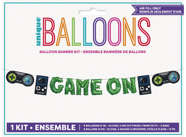 Gamer Birthday – "Game On" ballongord-kit i folie er den ultimate dekorasjonen for spillentusiasten som skal feire bursdag. Settet danner teksten "Game On"og blir et skikkelig blikkfang på festen. Perfekt til bursdagsfeiring, LAN-party eller temafester med gaming som tema.Ballongene er laget av slitesterk folie, og settet er enkelt å blåse opp med vanlig luft – krever ikke helium. De kan festes på vegg, over gavebordet eller ved kakebordet for å skape en kul spillatmosfære.Antall: 1 ballongord-kit