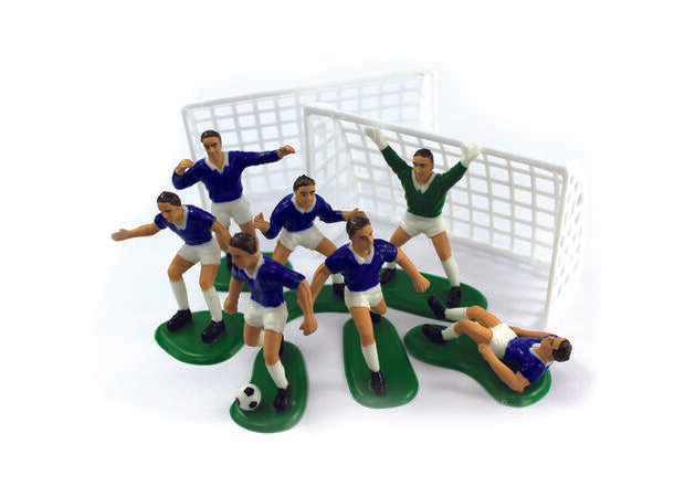 Kakedekorasjonssett fotball med 7spillere og 2 mål - Blå
