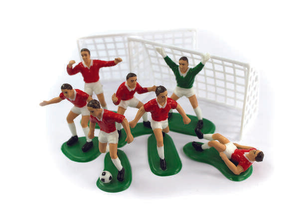 Kakedekorasjonssett fotball med 7 spillere og 2 mål - Rød