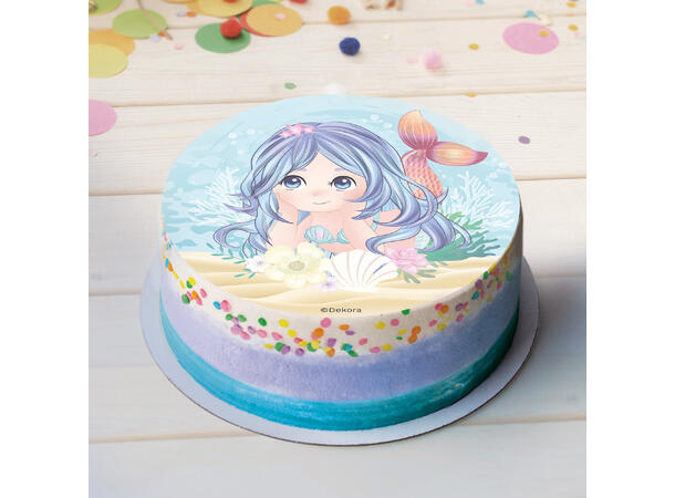Forvandle bursdagskaken til et magisk undervannseventyr med et spiselig kakeskilt med havfrue! Med sitt lekre motiv i vakre sjøfarger blir kaken et ekte blikkfang på festen. Skiltet er enkelt å legge på kaken og gir et profesjonelt og gjennomført uttrykk uten ekstra innsats. Perfekt til temafester med havfruer, sjø og magiske eventyr – barna vil garantert elske det. Inneholder 1 stk.