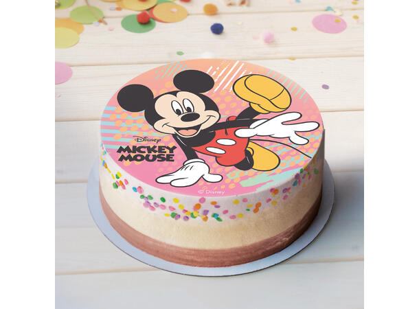 Gjør bursdagskaken ekstra morsom med et spiselig kakeskilt med Mikke Mus. Med sitt klassiske og fargerike motiv skaper det en festlig stemning som både barn og voksne vil sette pris på. Kakeskiltet er laget av spiselig materiale og er enkelt å legge på kaken, noe som gjør det til en rask og enkel måte å gi kaken et personlig preg. Perfekt til barnebursdager med Disney-tema.