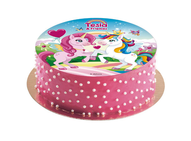 Gi kaken et magisk preg med et sukkerfritt, spiselig kakeskilt med enhjørningmotiv. Den fargerike og eventyrlige designen passer perfekt til bursdager, temafester eller andre anledninger der enhjørninger står i sentrum. Skiltet er enkelt å plassere på kaken, og gir en søt og stemningsfull detalj som gjør feiringen ekstra spesiell – helt uten sukker.