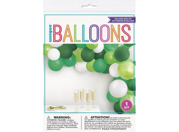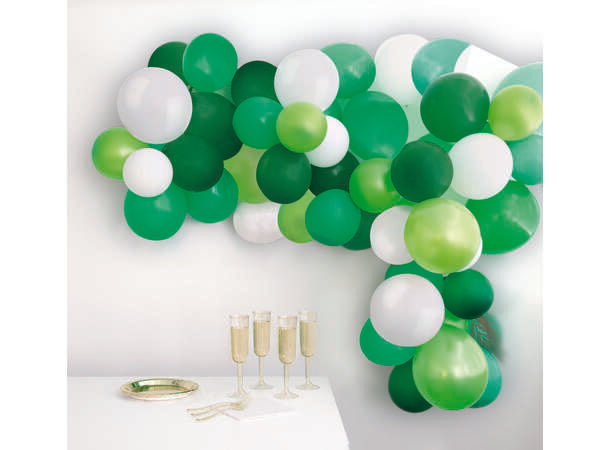 En ballongbue med 40 ballonger i grønt og hvitt er en frisk og elegant dekorasjon som setter prikken over i-en på festen. De grønne og hvite ballongene skaper en naturlig og harmonisk stemning, perfekt til konfirmasjon, dåp, hagefest eller bryllup. Med sitt stilrene uttrykk fungerer ballongbuen som et vakkert blikkfang ved inngangen, rundt kakebordet eller som fotovegg for gjestene. Dekorkitet er enkelt å montere, men gir en imponerende effekt som virkelig løfter helhetsinntrykket av feiringen.
