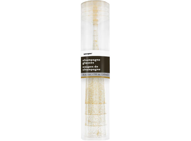 Champagneglass i gjennomsiktig plast med gull glitter 2dl