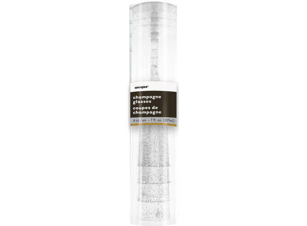 Champagneglass i gjennomsiktig plast med søvl glitter 2dl