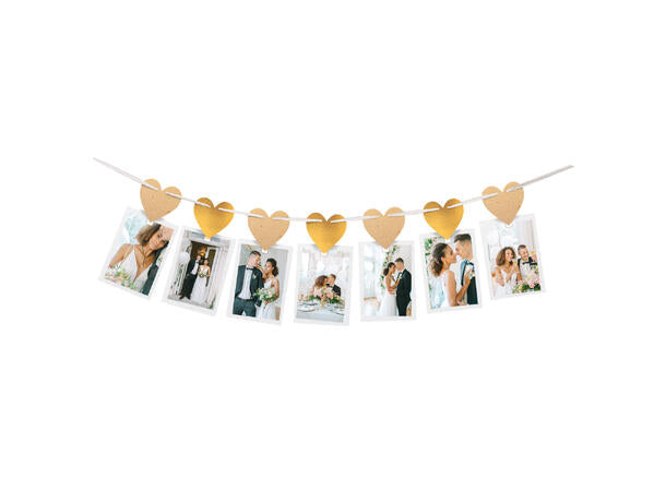 Vis frem minnene på en dekorativ måte med denne girlanderen til bilder! Perfekt til bursdager, bryllup, jubileer eller andre feiringer, er girlanderen designet for å henge opp og vise frem fotografier på en stilfull og personlig måte. Den gjør det enkelt å dekorere rommet samtidig som gjestene kan glede seg over bilder fra tidligere minner eller feiringer. Et dekorativt og praktisk tilbehør som tilfører varme og personlighet til enhver fest.