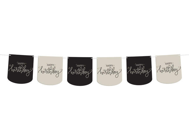 Creme Noir - "Happy Birthday" flaggbanner i papir 6m