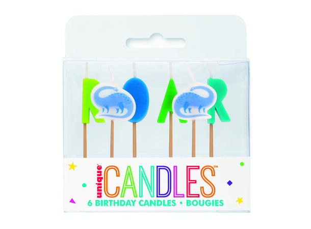 Sett et brølende preg på bursdagskaken med disse dinosaur kakelysene med teksten «ROAR»! Med fargerike detaljer blir de en morsom og stemningsfull pynt som passer perfekt til bursdager og dinosaurfester. Lysene gjør kakeøyeblikket ekstra spesielt og blir garantert en hit blant små dinosaurfans.