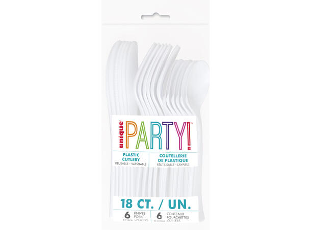 Praktisk trenger ikke bety kjedelig! Dette hvite plastbestikket passer perfekt når du vil holde det enkelt og stilrent, enten det er til barnebursdag, piknik, grillfest eller en rask oppdekking med litt ekstra finesse. Den nøytrale fargen gjør at bestikket glir rett inn i ethvert festtema, samtidig som det gir et ryddig og helhetlig uttrykk på bordet. Bestikket er lett, men solid, og gir en komfortabel spiseopplevelse uten stress med oppvask etterpå. Perfekt for deg som vil bruke mer tid på gjestene enn på ryddingen. Inneholder 18 deler (6 kniver, 6 gafler og 6 skjeer).