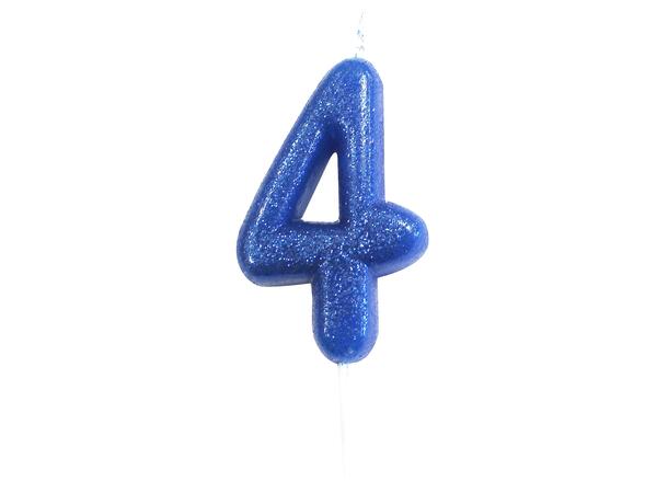 Nr 4 Glitter Tall – Blå, gjør bursdagskaken ekstra spesiell med dette glitrende tallkakelyset. Det støpte kakelyset på pinne gir en enkel og sikker måte å dekorere kaken på, samtidig som det skaper en festlig og glitrende effekt som vil fange alles oppmerksomhet. Perfekt for bursdager, temafester eller andre feiringer hvor tallmarkering er viktigHøyde: 7 cm Antall: 1 stkDette blå glitternummeret passer perfekt på både små og store kaker, og gjør det enkelt å feire milepæler med stil og glitter.