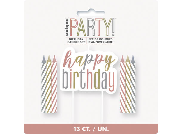 Happy Birthday kakelys i rosegull er den perfekte prikken over i-en på bursdagskaken. Med sitt elegante og moderne uttrykk gir de kaken et luksuriøst preg og sørger for at bursdagsbarnet får en feiring som virkelig skinner. Lysene er enkle å plassere og passer til alle typer kaker, enten det er en liten feiring eller en storslått fest. En stemningsfull detalj som gjør bursdagsøyeblikket enda mer minneverdig.