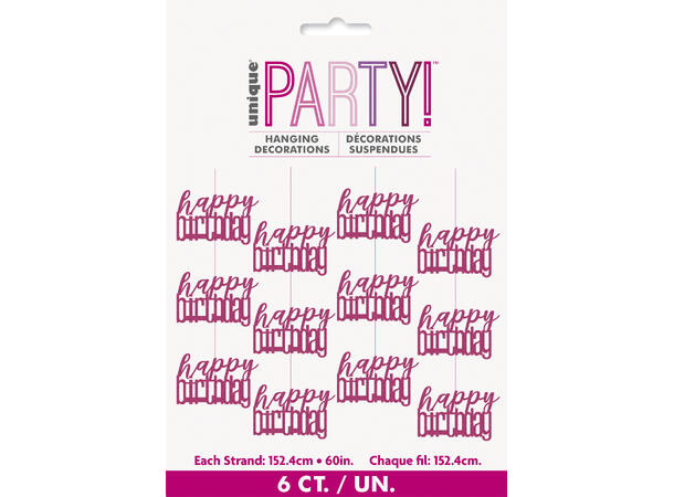 Happy birthday rosa & sølv hengedekorasjoner 152cm