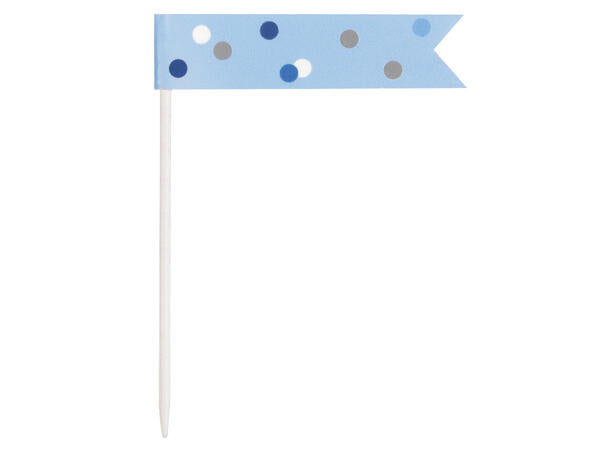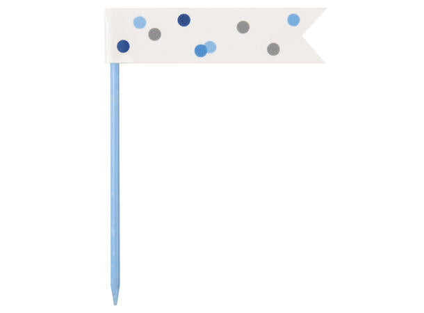 Blå og Sølv Glitz flagg cocktailpinner er en liten, men effektfull detalj til bursdagsfeiringen. De små flaggene med glitrende design setter et festlig preg på alt fra cupcakes og kaker til drinker og snacks. En enkel måte å tilføre litt ekstra eleganse og farge til borddekkingen.