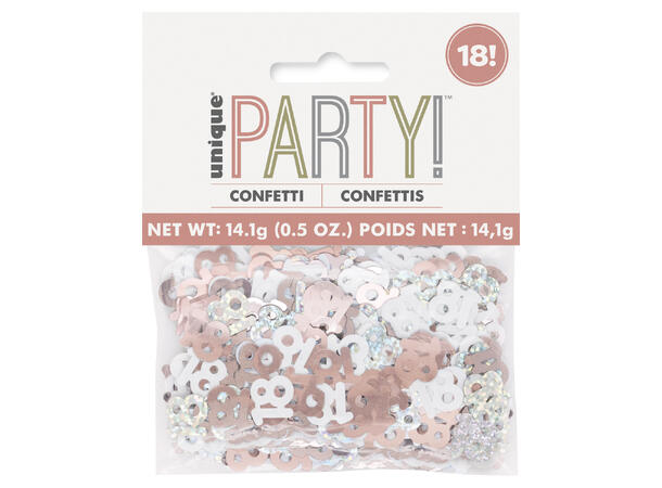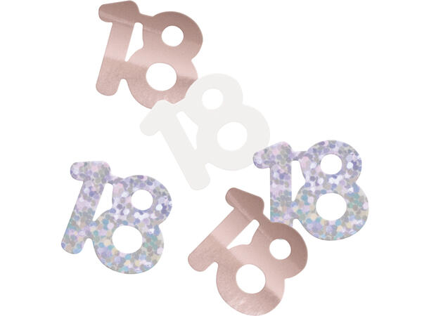 Bordkonfetti i rosegull med tallet 18 er den perfekte detaljen for å markere en spesiell bursdag. Den glitrende fargen setter et elegant preg på borddekkingen og passer utmerket til å feire overgangen til voksenlivet. Strø konfettien utover festbordet, bruk den i invitasjoner eller legg den i gaveposer for å skape en helhetlig og minneverdig stemning. En liten, men effektfull pynt som virkelig fremhever 18-årsdagen.