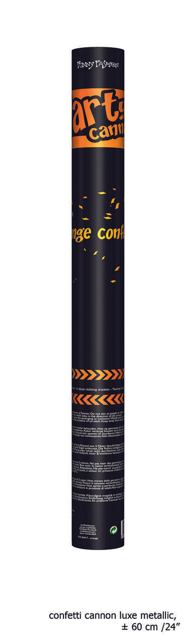 Gi festen en energisk gnist med en oransje konfettikanon på 60 cm! Denne kvalitetskanonen er fylt med flammeresistent Slow Fall-konfetti som daler rolig gjennom luften og skaper en spektakulær effekt. Med en kraftig rekkevidde på 10–15 meter sørger den for at konfettien fyller hele rommet eller dansegulvet, og gir en feiring med ekstra wow-faktor. Perfekt til idrettsarrangement, bursdager, konserter eller andre anledninger der du ønsker å skape en levende og festlig atmosfære. Enkel å bruke – bare vri og fyr av for et eksplosivt øyeblikk av fargerik glede. Inneholder 1 stk.