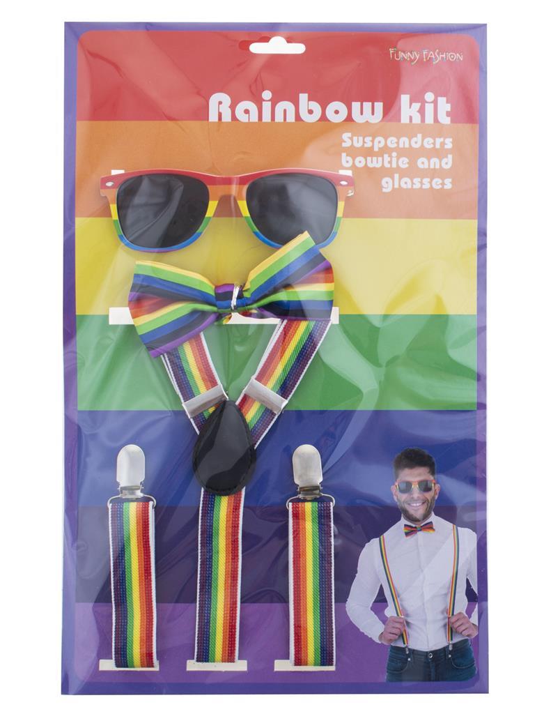 Gi antrekket ditt et skikkelig løft med dette fargerike regnbuesettet som består av briller, sløyfe og sele! Enten du skal på pride, festival, temafest eller bare ønsker å sette litt ekstra farge på hverdagen, er dette settet det perfekte valget. De ikoniske regnbuefargene sprer glede og energi, og tilbehøret er lett å kombinere med alt fra enkle klær til mer gjennomførte kostymer. Brillene gir et lekent uttrykk, sløyfen tilfører en festlig detalj, og selen gjør looken komplett.Onesize – passer de fleste voksne. Inneholder 1 sett.