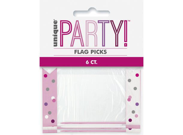 Rosa & Sølv Glitz cocktailpinner med flagg
