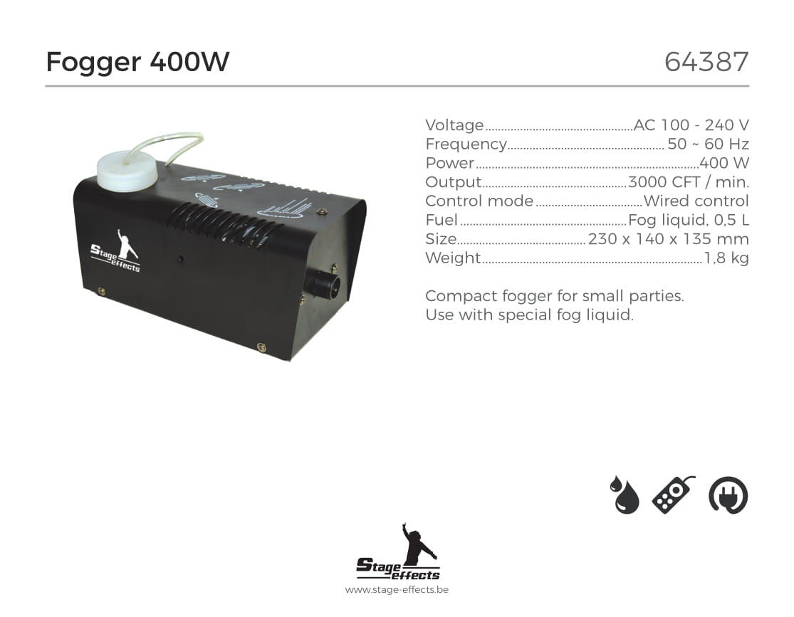 Maskinen krever egen røykvæske (varenummer 75084376 eller 75064392). Inneholder 1 stk.