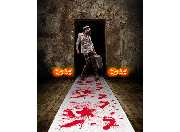Skap en skummel og uhyggelig stemning fra første skritt med denne blodige gulvløperen – perfekt til Halloween, skrekkfest eller temakveld med grøss og gru. Den realistiske blod-effekten gir et dramatisk uttrykk som garantert setter tonen for kvelden. Rull den ut i gangen, ved inngangspartiet eller midt i festlokalet for å gi gjestene en uforglemmelig velkomst. Enkel å bruke og ideell for engangsbruk når du vil ha maksimal effekt med minimal innsats.