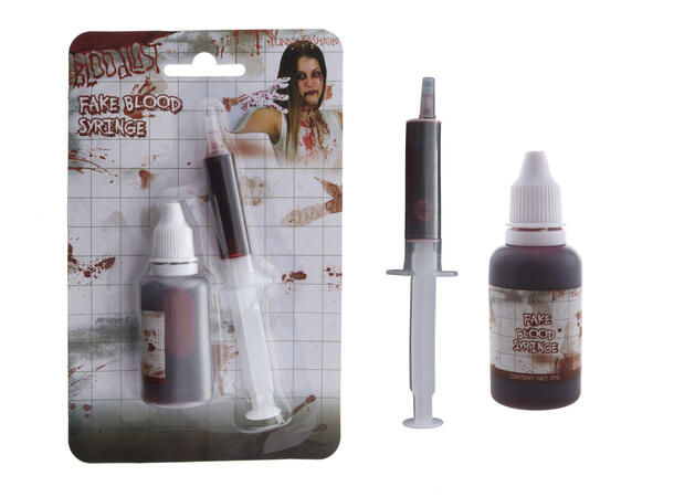 Innhold: 1 sprøyte og 1 flaske med kunstig blod. Mengde: 57 g.