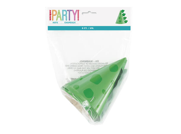Dinosaurhatter i papp er en morsom og fargerik detalj som gjør bursdagen ekstra spennende for små dinosaurfans. Med kule motiver og livlige farger blir hattene en hit blant barna og setter raskt stemningen for en ekte dinofest. De er enkle å ta på, behagelige å bruke og gjør seg også godt på bilder som minner fra dagen. Perfekte til barnebursdag med dinosaurtema, enten de deles ut ved ankomst eller legges klart på bordet til hver gjest. Inneholder 8 stk.
