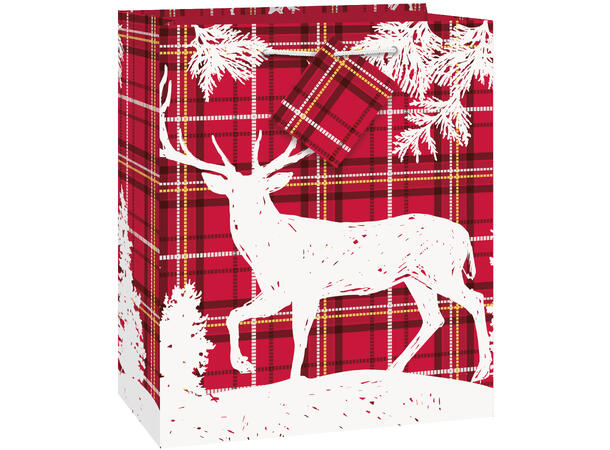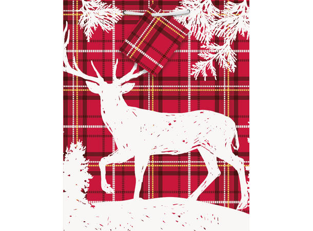 Medium gavepose i papir med koselig julemotiv. Designet har rådyr og klassiske ruter i ekte juleånd – perfekt til mindre gaver som likevel fortjener en ekstra fin innpakning.Inneholder: 1 gavepose i papir. Størrelse: 23 x 18 cm.