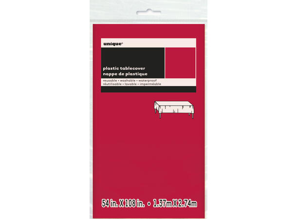 Gi borddekkingen et stilfullt og innbydende preg med denne ensfargede rubinrøde plastduken. Den passer like godt til bursdager, konfirmasjon, jul, temafester eller andre anledninger hvor du ønsker å sette en varm og elegant stemning.Plastduken er praktisk i bruk – den beskytter bordet mot søl, er enkel å tørke av underveis i festen, og kan enkelt brettes sammen etter bruk. Den leveres kompakt pakket, noe som gjør den både lett å oppbevare og ta med seg til ulike arrangementer.