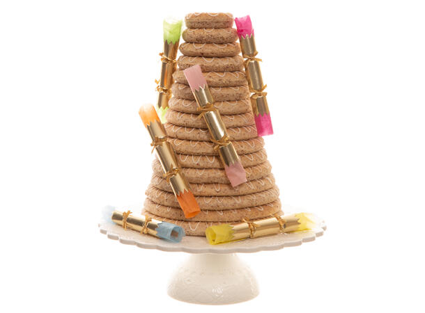 Klassiske smell Bon-Bons i gull og assorterte farger med sløyfe – en morsom og festlig tradisjon til julebordet eller nyttårsfeiringen. Hver bon-bon inneholder en liten overraskelse for ekstra glede rundt bordet.