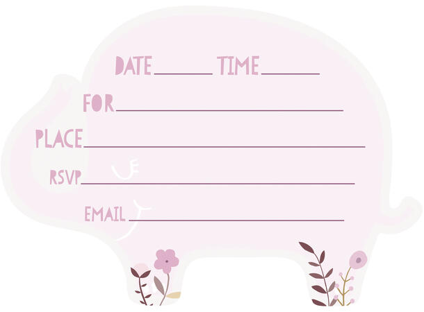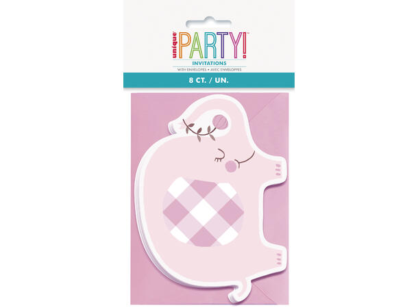 Rosa elefant invitasjoner i papir er en nydelig og koselig måte å invitere gjestene til babyshower, dåp eller bursdag. Med sitt søte elefantmotiv og den myke rosafargen setter de den rette stemningen allerede før festen begynner. Invitasjonene gir et personlig preg og gjør det enkelt å formidle viktig informasjon om arrangementet. Perfekte for å skape forventning og glede hos gjestene til den store dagen.
