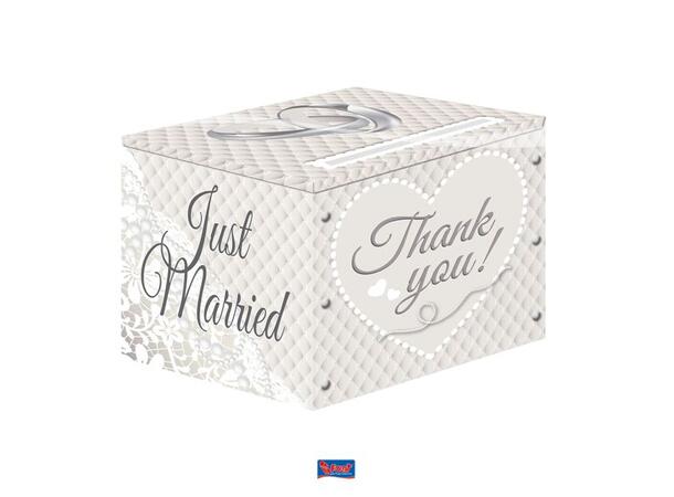 Gjør bryllupsfeiringen enda mer elegant med denne praktiske papiresken til gavekonvolutter! Med sin stilrene design er den perfekt for å samle konvolutter, kort og små hilsener fra gjestene på en ryddig og dekorativ måte. Esken passer flott inn som en del av gavebordet og gir et sofistikert preg samtidig som den holder alt samlet. Inneholder 1 stk. Størrelse: 30 x 25 x 30 cm.
