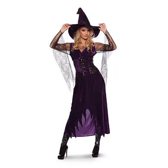Tryll frem en fortryllende stemning med dette heksekostymet for dame! Kostymet inkluderer både kjole og hatt, og gir deg en klassisk og elegant hekse-look som passer perfekt til Halloween, temafester eller karneval.