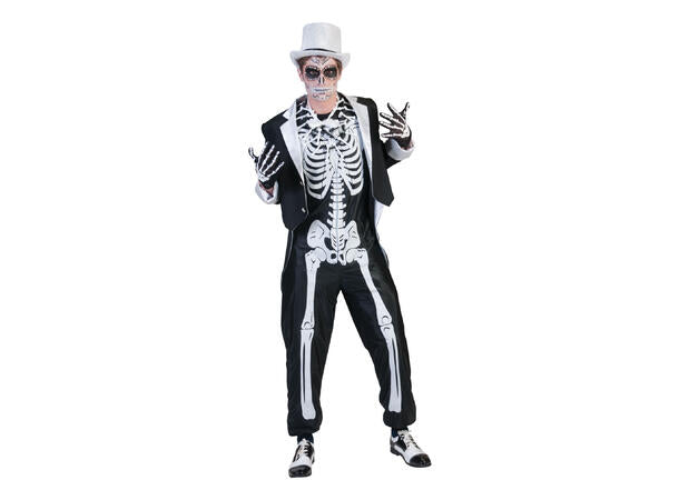 Gjør deg klar til å skape grøss og gru med dette skrekkelige brudgomkostymet for herre! Kostymet består av en jumpsuit med skjelettdetaljer og en matchende jakke som gir et makabert, men stilig preg. Perfekt for halloween, skrekkfest eller temakveld der du vil skille deg ut som kveldens mest uhyggelige brudgom.