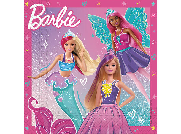 Skap en fargerik og glamorøs stemning med disse Barbie serviettene! Med stilige motiver av den kjente dukken blir de en morsom og praktisk detalj på barnebursdagen eller temafesten. Serviettene på 33 x 33 cm passer perfekt til snacks, kaker og små søl, samtidig som de gir borddekkingen en gjennomført Barbie-look. Inneholder 20 stk. Størrelse: 33 x 33 cm.