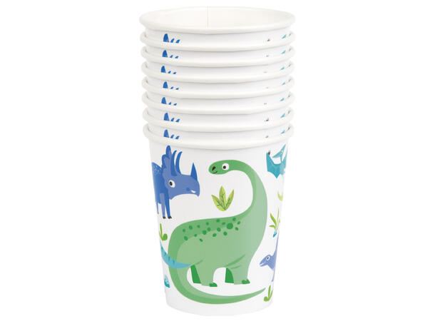 Dinosaurkopper i papp er en morsom og praktisk detalj som gjør bursdagen komplett for små dinosaurfans. Med fargerike motiver som bringer temaet til live, passer koppene perfekt til servering av saft, brus eller andre festdrikker. De er lette å bruke, enkle å rydde bort og bidrar til å skape en helhetlig borddekking sammen med tallerkener og hatter i samme stil. En super måte å gjøre barnebursdagen enda mer spennende og gjennomført.