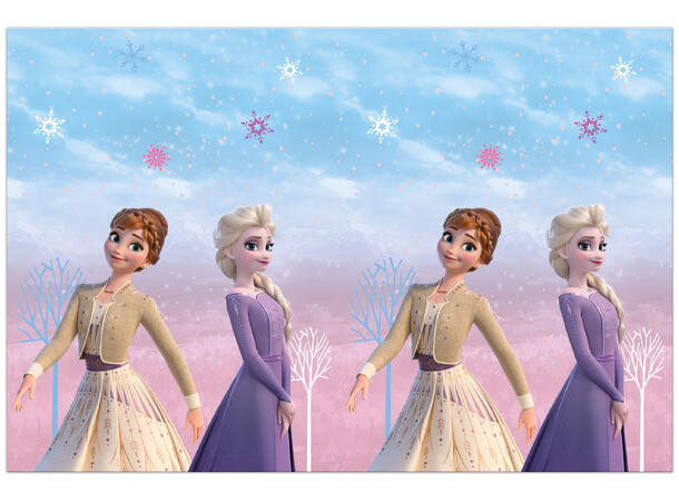 Forvandle bordet til et vintereventyr med denne Frost plastduken! Med vakre motiver av Elsa, Anna og vennene deres blir duken et perfekt blikkfang på barnebursdager eller temafester. Den beskytter bordet mot søl og kliss, samtidig som den gir en gjennomført dekorasjon som setter en magisk stemning. Enkel å legge på og praktisk å rydde bort etter festen. Inneholder 1 stk. Størrelse: 120 x 180 cm.