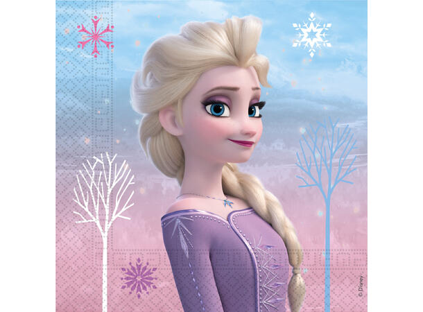 Gjør bordet ekstra eventyrlig med disse Frost papirserviettene! Med flotte motiver av Elsa, Anna og vennene deres blir serviettene både dekorative og praktiske på barnebursdager eller temafester. De passer perfekt til kake, snacks eller små søl, og setter et magisk preg på borddekkingen som barna vil elske. Inneholder 20 stk. Størrelse: 33 x 33 cm.