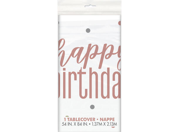 Gjør bordet klart for fest med denne Plastikkduken i rosegull! Med elegant rosegullfarge tilfører den et glamorøst og festlig preg, perfekt til bursdager, babyshower, bryllup eller andre spesielle anledninger. Duken beskytter bordet samtidig som den gir en stilfull dekorasjon som gjør borddekkingen komplett. Enkel å legge på og rydde av etterpå, og kan kombineres med matchende tallerkener, servietter og dekor for en gjennomført festopplevelse. Inneholder 1 stk. Størrelse: 137 x 214 cm.
