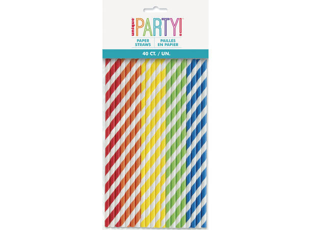 Disse papirsugerørene i assorterte farger på 20 cm gir en morsom og fargerik stemning til festen. Perfekte til bursdager, sommerfester og andre anledninger hvor du ønsker å skape liv og glede. Et miljøvennlig alternativ til plast som samtidig pynter opp bordet.Inneholder 40 papirsugerør i assorterte farger, 20 cm.