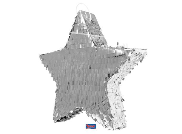 Skap spenning og feststemning med denne Pinata Stjerne i sølv! Perfekt til bursdager, nyttår, jubileer eller andre spesielle anledninger, fylles den med godteri eller små gaver som gjestene kan prøve å få tak i. Den glitrende sølvfargen gjør pinataen til et dekorativt blikkfang, samtidig som selve leken gir latter, spenning og minnerike øyeblikk på festen.
