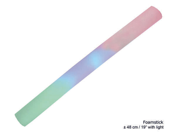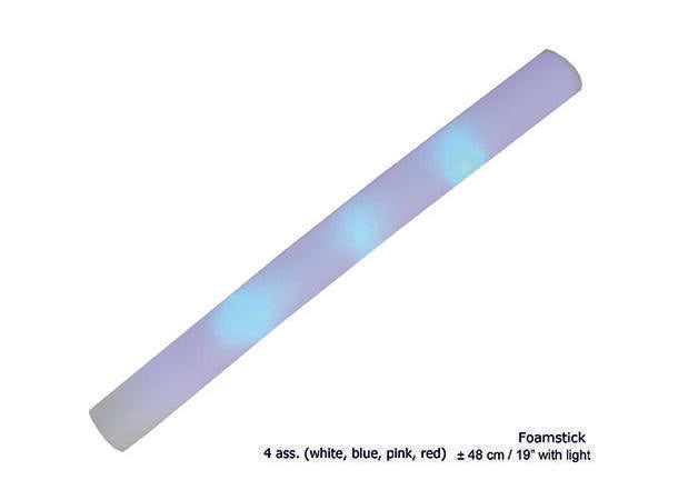Én pakke inneholder 10 foam sticks. Hver stick er 48 cm lang og inkluderer batteri.