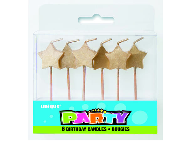 Gi bursdagskaken et glitrende preg med disse kakelysene i gullstjerne! Perfekte til bursdager, nyttår, jubileer eller andre festlige anledninger, setter de et elegant og festlig uttrykk på kakebordet. Med sin stjerneform blir de en dekorasjon som både små og store vil legge merke til.